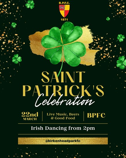 Join us at BPFC for a proper St. Patrick’s Day celebration - drinks, laughs, and good times with the club family.