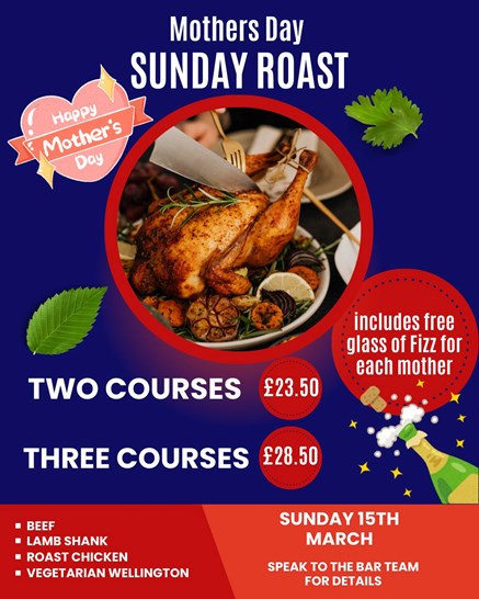 Treat Mum to a proper Sunday dinner at the club – good food, great company, and no washing up.